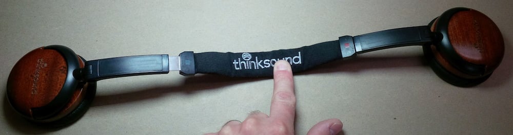 The On1 headphones have a fabric (I'm going with hemp again because I like to type that word) covered headband. Under is metal but I really have to compliment thinksound on the amount of padding. They could have gone with more and I've tested plenty of headphones that have had less, but they seemed to have hit the sweetspot where it was just enough to be comfortable but not so much as to be bulky. The thinksound name is stitched across the top which is another clue as to how to put the On1s on.