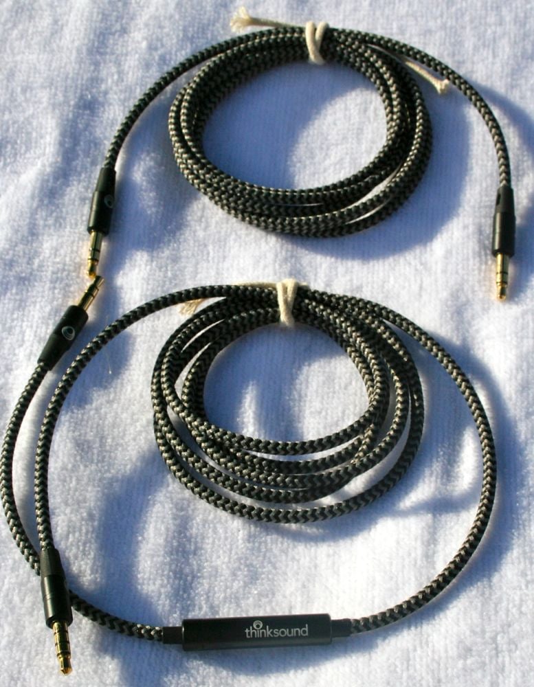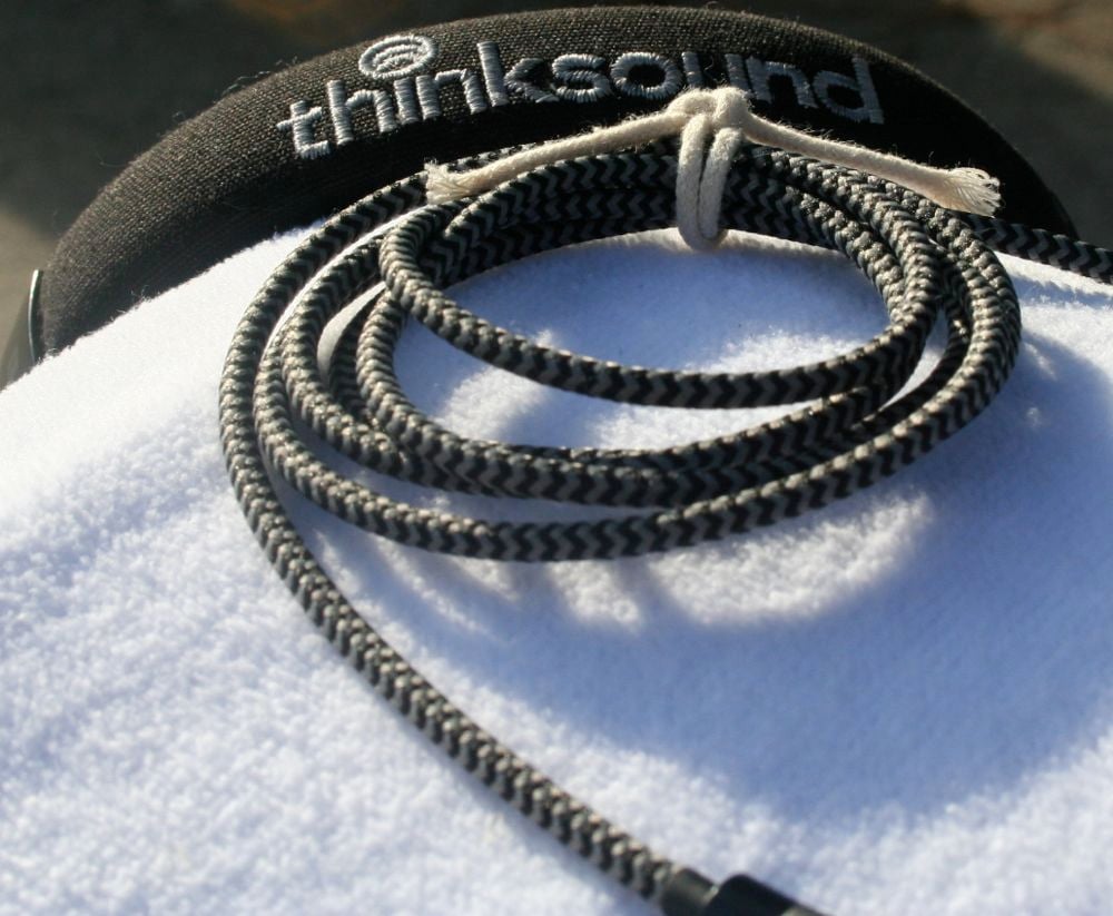 The cable attaches to the right earcup and is fabric covered. Under the cable, according to thinksound, is a layer of Kevlar to prevent or reduce tangles. What really prevents tangles is the stiffness of the cable. Small, thin, and extremely flexible cables end up in knots before you can blink. The heavier and stiffer the cable, the less it tangles. The thinksound On1 cable is very thick and has enough stiffness to keep it from getting in very bad tangles. Even when it did knot, the cable would not bend enough for the knot to get tight so the loops that the thinksound cables came in were about as tight as any knot. This meant that it was easy to untangle it which, for me, is a win in the tangle contest.