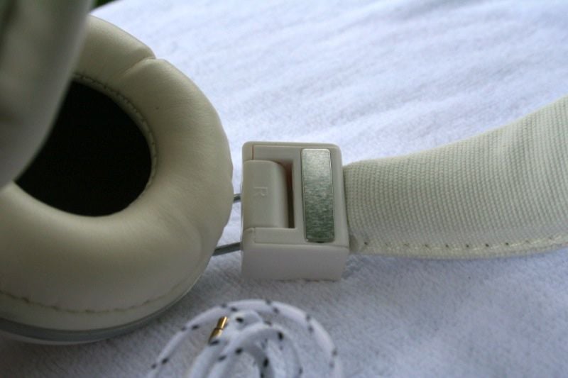 The Wicked Audio WI-8500 Evacs have a matte white finish (a case could be made for semi-gloss though they definitely aren't glossy). They forgo the normal leather or pleather headband for, wait for it, canvas. It really brings home the old-school theme behind the Evac headphones. The earcup cushions are leather (or pleather) and very plush. The 3.5mm jack is gold plated. The cable is fabric covered and braided. It is attached to both earcups with the traditional 'V' connection which was not, I discovered, an in-line control/mic as I expected.