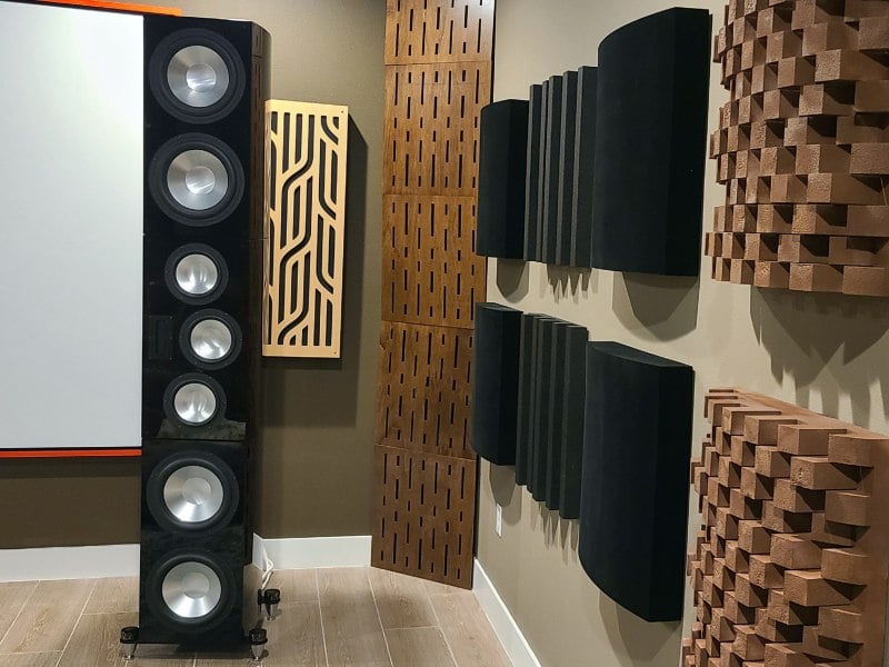 Another likely culprit for compromised two-channel performance in a dedicated home theater is an over-treated room. Specifically, the use of too much absorption can make your two-channel audio sound dry, flat, and dead. When you’re surrounded by speakers, you might be tempted to add more and more absorption in order to reduce reflected sound and allow your speakers, rather than your room, to produce the sonic ambience. To a certain extent this approach makes sense; controlling reflections can improve dialogue intelligibility, and can help a Dolby Atmos system more precisely place objects within the 3D sound-field, for example. But too much absorption can make a room sound unnatural, and this effect is more noticeable when listening to just two speakers.