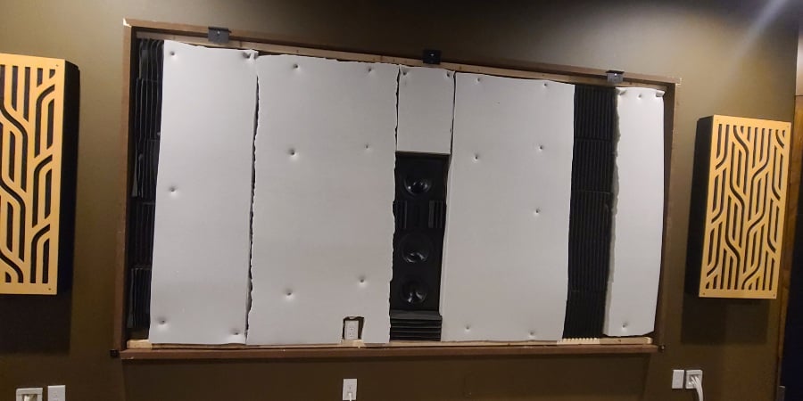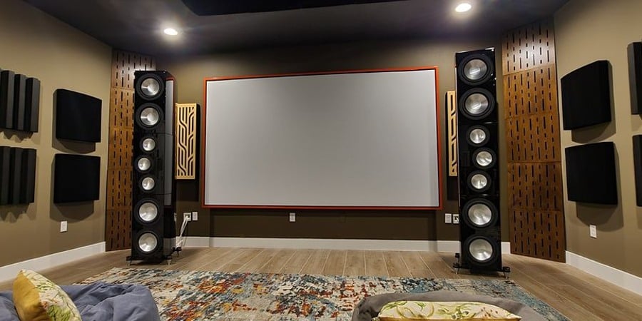 AH Smarthome Theater Room 150" AT Screen Framed out with Acoustic Treatments and Center Channel