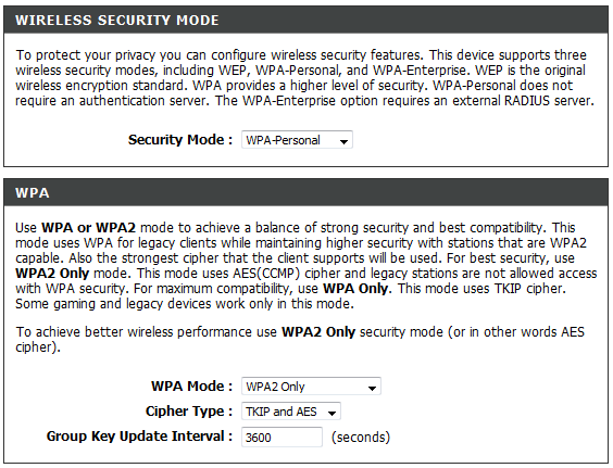 Editorial Note: Some old devices will not work with WPA or WPA2. If you have an old device that won’t connect after setting up your router with WPA2 security, try changing the security to WEP, or simply turn off all security and then try to connect the problem device again. If it connects, then we know the connection problem was related to WPA or WPA2 security. I would recommend upgrading the wireless card in that device or hard-wiring it to the network. I would NOT recommend compromising the security of the entire network just for one outdated device.