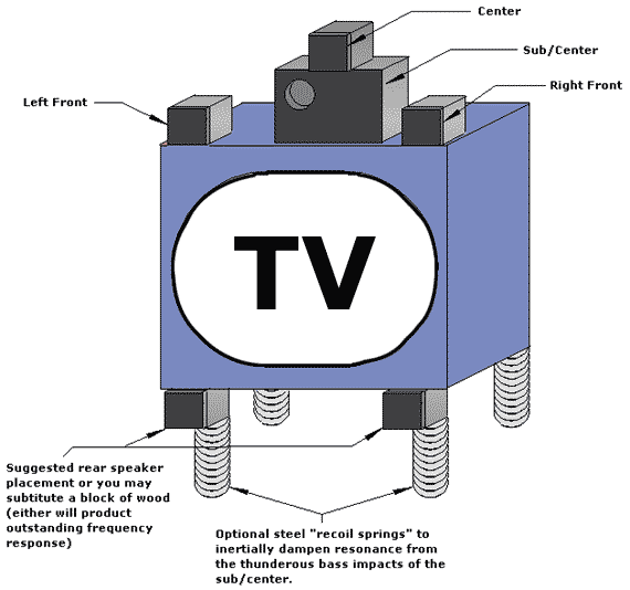 - Placing optional "recoil springs" on the bottom of the TV will help inertially dampen the system to minimize resonance during bass transients.