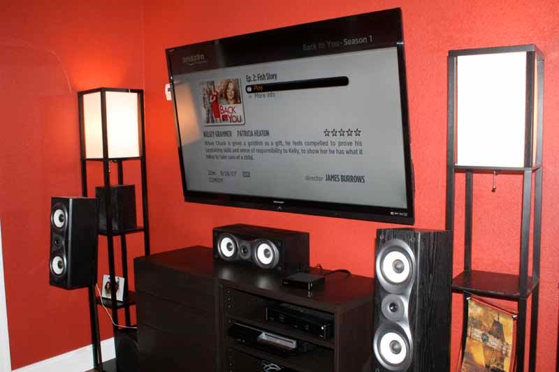 The thing about this mount that is pretty cool is that you can slide the unit left and right quite easily to get it perfectly positioned on the wall. You can also grasp the television at the top and bottom and literally pull it out from the wall until it's able to be tilted downward as needed (up to 15 degrees of forward tilt). This also allows you excellent access to the connections for HDMI, component, networking, or whatever you need to get it up and running. And that's just what we did. We picked up a 5 meter High Speed CL3 HDMI cable from PartsExpress and fed it through the cable port we had just installed.