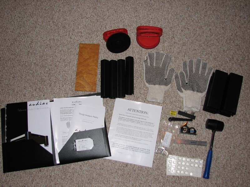 The beautiful Audiav logo (middle pic) with embedded crystal really finished off the rack nicely. This is no wimpy rack, check out this amazing structure (right pic) just begging to be stacked with heavy high-end gear. Notice the shelves are all resting on decouplers to reduce any chassis vibration.