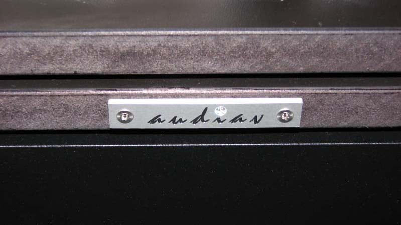 - Jewel encrusted, hand labored stainless steel Audiav shelf badging with serial number