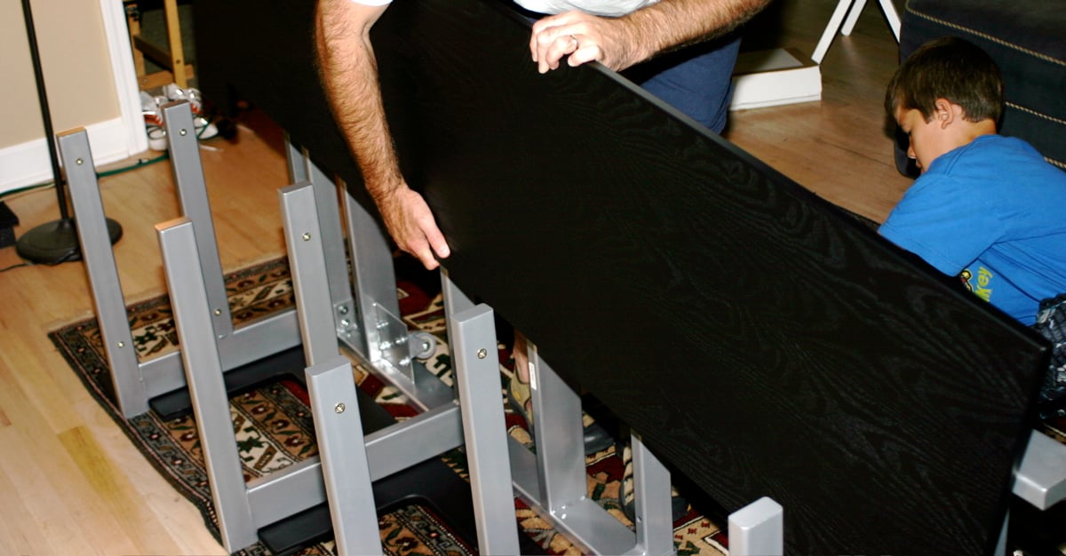 StudioTech provides free shipping on the E-1, and that is a good thing, because it was delivered to my house via 18-wheeler. Actually, I was eating lunch at a restaurant near my house and got a call on my cell phone from the truck driver. He was about 20 minutes away and wanted to discuss dropping the pallet, yes, I said PALLET, at my house. After some directions and discussion, we both decided it would be easier for me to meet him out on the highway at a gas station about 5 minutes from my house. I drove over in my pickup and backed it up to his rig for the transfer, after deciding this would be easier than him navigating through my neighborhood in his truck. The pallet had several boxes shrink wrapped together, so we cut the wrap and loaded them into the truck one at a time. This was the first sign I had that the E-1 was a substantial piece of furniture. The boxes were heavy enough that I was already thinking through who I could call to help me get them out of the truck and into my house.