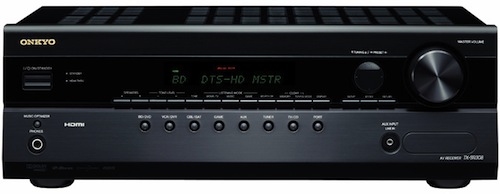 The Sony STR-DH510 is a 90 watt per channel (measured 20Hz to 20kHz), $230 receiver that has the most complete HDMI 1.4 spec out of any in this comparison. While most only go as far as 3D support, the STR-DH510 includes not only Audio Return Channel (ARC) but also HDMI Stand-by Pass-Thru. The latter allows you to pass audio and video up to your display without powering on the receiver. While die-hard Audioholics might find this a bit perplexing, what it means is that you can use your display speakers instead of your main speaker setup. For night-time viewing, this can be a very handy feature. Like the Pioneer, it sports three HDMI, two component video, and four composite video inputs and one output a piece. It also has one coaxial and two optical digital audio inputs. It is the only receiver in this comparison that doesn't have a 3.5mm jack on the front (or anywhere for that matter) for iPod/MP3 player integration. You'll need to get some sort of iPod to RCA cord if you want to enjoy your compressed audio. At 16.4lbs, it is the lightest in the group though it practically ties with Yamaha and Onkyo (just .3 lbs separate these three) for this dubious honor.