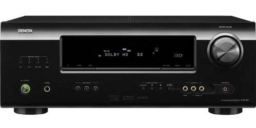 While the Sherwood RD-6513 isn't the most advanced receiver in this comparison, don't immediately discount it. The RD-6513 again uses the odd measurement of 40Hz-20kHz into a 6 ohm load giving them 110 watts per channel. This definitely inflates their stats for the uninitiated but even the neophyte will notice the lack of 3D support. For $250, you get a paltry two HDMI 1.3 inputs. It also sports three component, two s-video, and two composite video inputs and one output of each type. Again, analogue to digital video conversion is out so you'll need a cable for each video type. If you've been holding on to that VCR and want to use the slightly better s-video connection, the RD-6513 is your only option in this comparison. But let's talk about the strong points of the receiver. First, it includes a 3.5mm jack on the front for iPods/MP3 players. It also ties the Pioneer for the second heaviest at 19.6 lbs. It is the only receiver in the comparison to have 5.1 analogue inputs for integration with legacy gear. That, alone, is worth the cost of 3D for some. It also is one of the two that has automatic speaker setup and room correction included. For an entry level receiver, this is a huge boon especially when you're the cheapest one sporting it.