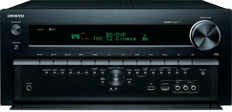 As you’d expect from Pioneer’s Elite line, the SC-71 is a powerful (120W x2) and feature rich receiver. In fact, the $1,000 SC-71 mostly hits every check mark on our handy dandy list including a MHL HDMI input on the front panel, 4K upscaling, and Advanced MCACC auto-setup and calibration. So why is it down here among the riff-raff? While the SC-71 does boast 2.2 channels worth of pre-outs, we’d really like to see the full seven channels. Yes, it matters that much to us. In addition, it’s worth nothing that unlike all the other options here, zone 2 is only available via assignable amplification, as opposed to offering a line out option as well for connecting an outboard amplifier.