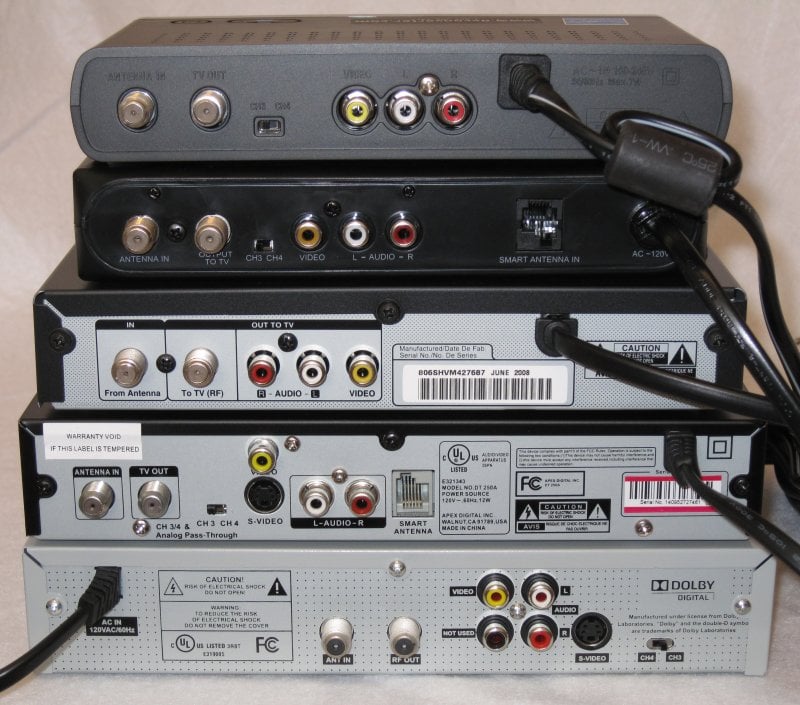 Top to Bottom and Left to Right: Digital Stream, RCA, Insignia/Zenith, Apex Digital, Channel Master