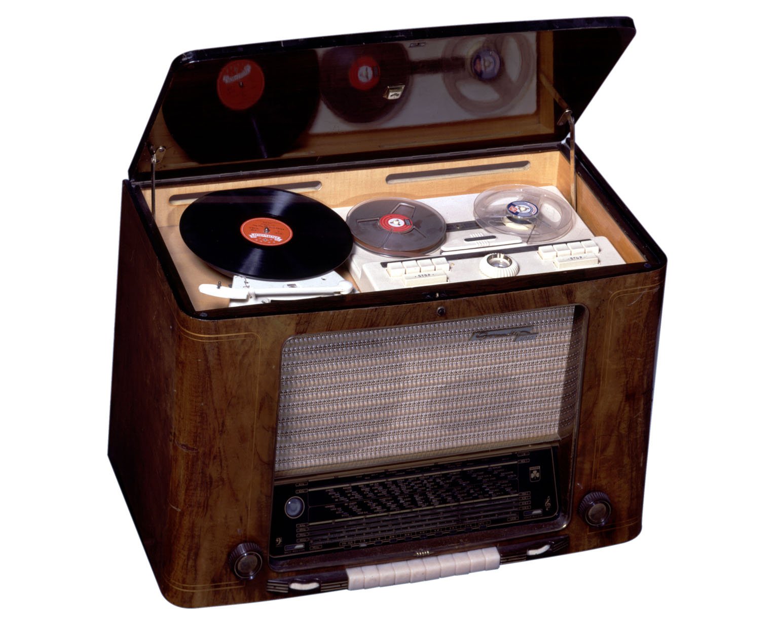 Those very early post-war home music systems were not exactly barn-burners of wide-range, accurate reproduction. They were mono systems (single channel), comprised of tube electronics of limited power and bandwidth. Ten or twenty watts maximum was common, with a frequency range of about 50 or 60-15,000 “cps” (cycles per second, as it was called then). THD at maximum power, if it was specified at all, was usually on the order of 10%, especially in the bass end.