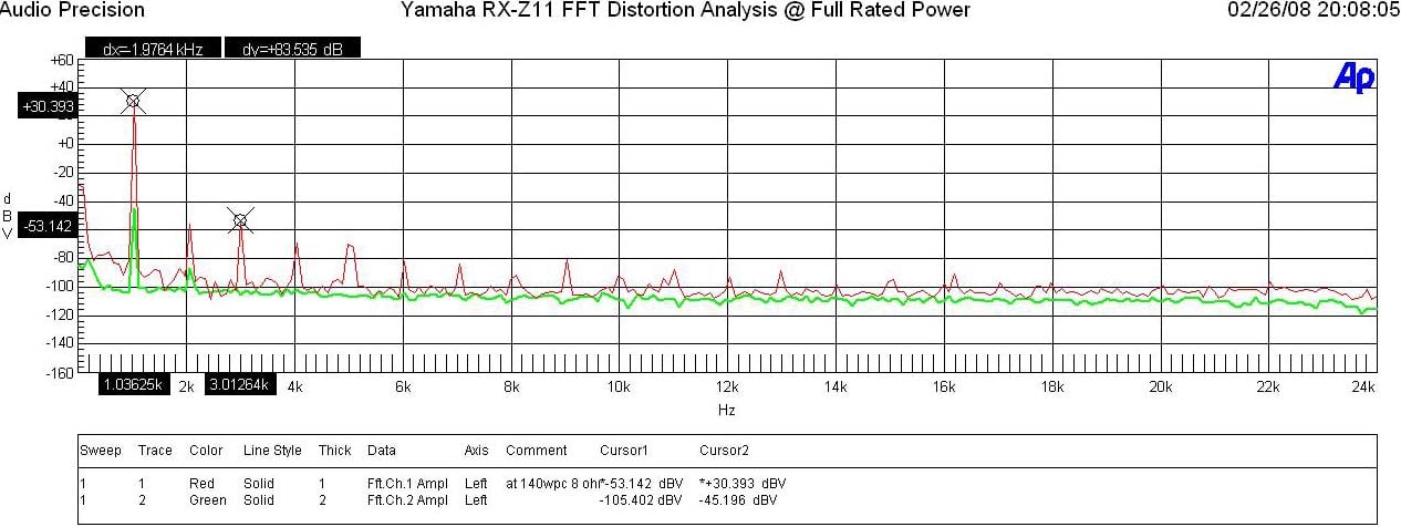 FFT Distortion Analysis of Yamaha RX-Z11 at Full Rated Power