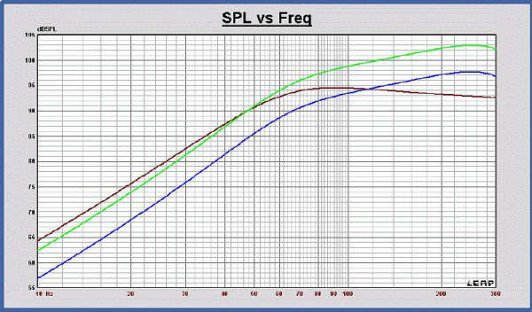 Modeling again in LEAP 5, the plots showing at above left are free-air (blue), half-space @ 2m (red) and half-space @ 1m (purple).