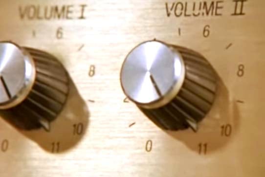 “Crank up the drums, crank up the bass, crank up my Les Paul in your face!”