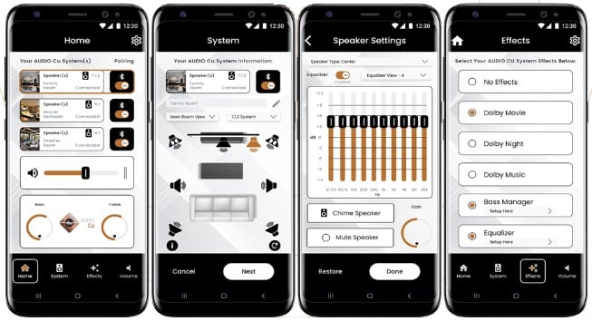 You can control individual speakers or entire systems using a mobile app available for both Apple and Android devices, which should allow for easy adjustments and access to a variety of audio presets and listening modes.