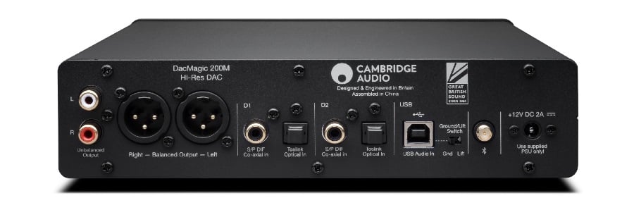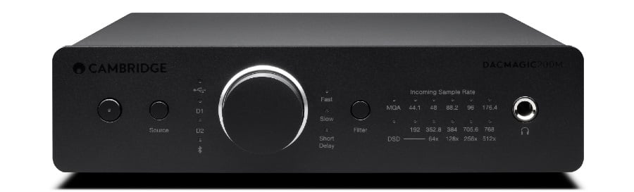 You can upgrade the audio output of the MXN10 — or any digital source — by connecting the DacMagic 200M via an optical or coaxial digital cable. The DacMagic 200M also has a USB input supporting 24-bit high-res PCM files with sample rates up to (a frankly ridiculous) 768kHz. The DacMagic 200M also supports DSD up to DSD512, and is the first Cambridge Audio DAC to support MQA. Bluetooth with aptX is on board for convenience. However you get your digital audio, it will be routed though the DacMagic’s Dual ESS ES9028Q2M chips on its way to the unit’s analog outputs.