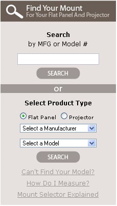 Ever want to find out exactly what flat panel or projector mounts are compatible with your TV? Da-Lite has developed an application that will help consumers do just that. Da-Lite's new Mount Selector is an easy online tool that can be used to determine which Advance mount is compatible with your flat panel TV, display monitor or front projector. The Mount Selector can be used in a variety of ways. Simply enter the model of the flat panel or projector in the search box and the box itself will display a filtered list of displays as you type. If you'd prefer, you can select whether you are looking for a flat panel or projector mount, then enter the manufacturer and be presented with an entire list of available models.
