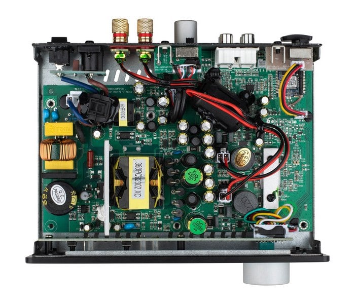 The amp promises clean, low-distortion power, with a flat frequency response from 20Hz to 20,000Hz. The DTA-100ST is rated at 45 watts per channel RMS into 4 ohms, with a maximum peak power output of 100 watts per channel, also into 4 ohms. No 8-ohm rating is specified, but the ability to drive 4-ohm speakers is welcome, and not something you can take for granted when choosing a small, inexpensive amplifier in this class. The amp features all-metal construction, a brushed black aluminum faceplate, and an oversized silver volume knob, resulting in a tidy, no-frills aesthetic. Still, I’d say it’s more attractive than most mini-amps in this price range.