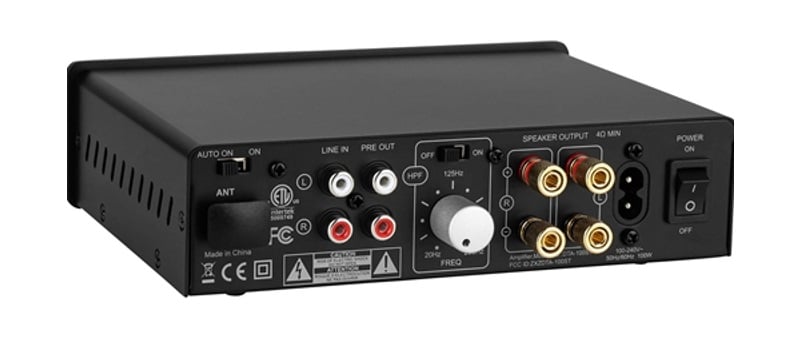 In addition to line-level RCA inputs and outputs, the DTA-100ST is equipped with bluetooth 5.0 for easy wireless streaming from a laptop, smartphone, or tablet. One of the standout features of this amp is its adjustable high-pass filter, which can be applied to the speaker outputs allowing the user to remove bass frequencies from the main speakers when using a subwoofer. The high-pass can be set anywhere from 20Hz to 250Hz. Users of powered subs with built-in low-pass filters can connect them via the full-range preamp outputs on the rear of the DTA-100ST. But that’s not the only way to go. The DTA-100ST is designed to integrate seamlessly with Dayton Audio’s DTA-100LF desktop subwoofer amplifier ($115), which features adjustable phase, a subsonic filter, a low-pass filter, and a single band parametric EQ. So if you have a passive subwoofer or you want to build one yourself, Dayton’s DTA line has you covered. Of course, the high-pass filter on the DTA-100ST can be defeated if you prefer full-range output from your main speakers. Impressively for a piece of gear in this price range, the DTA-100ST includes a 5-year warranty.