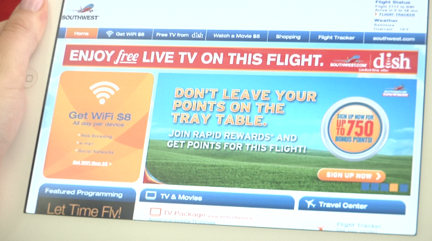 Southwest Air has always been a favorite of ours, but now they have an even bigger draw: free television. Beginning today (and for Southwest Customers exclusively) passengers can use their iPhone, iPad or other Internet-ready device to get free access to live TV and up to 75 on-demand shows. This new amenity is available on all of the airline's 400+ Wi-Fi-enabled planes. DISH unveiled the new service by surprising a plane full of passengers with a free iPad 2 and an introduction to the service. As of today, passengers flying on Southwest can stream directly to their personal devices live TV and up to 75 on demand titles for free.