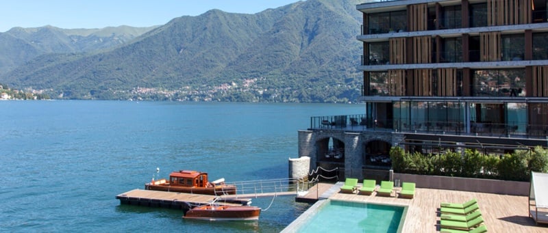 When I first heard that a high-end Italian hotel offered a suite with an audiophile system, I imagined electronics from Unison Research or Audia Flight, powering a pair of sculpted speakers from Opera, Sonus faber, or Franco Serblin. Italy has no shortage of high-end manufacturers, after all. But Contreras is a fan of old-school American muscle. The system is built around a pair of Klipsch La Scala II speakers, powered by a McIntosh MC275 amplifier and C22 Preamp. The analog front end includes a Thorens 1601 turntable with Sumiko Amethyst cartridge, and a restored Revox tape deck. The 500 LPs permanently housed in the suite are curated from Contreras’s own collection, with additional selections chosen by his son. Even the stylish interior design, by famed designer Patricia Urquiola, takes audio into account. For example, the side walls in the listening room are dressed in custom jacquard fabric, chosen in part for its acoustical properties. The floor-to-ceiling windows behind the speakers may not be ideal for sound quality, but they afford priceless views of Lake Como. And of course, the hotel offers more than just a cool audio system. The Darsena Listening Suite has a private deck with direct lake access. The private beach and dock allow guests to come and go via one of the hotel’s boats, custom-built by Ernesto Riva. There’s also a full-service spa, a large sundeck, and even a 60-foot-long infinity pool suspended over the lake.