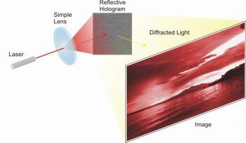 Holographic projection of 2D (rather than 3D) images represents a compelling alternative to conventional image projection. Holograms are efficient: they work by routing light to the places where you want it, and away from the places you don't. Video projectors based on this holographic technology require only a very few components, which means they can be made very small - and the smaller you make holograms, the better the image that results. So a projector could be integrated into a laptop, a PDA, or even a mobile phone.
