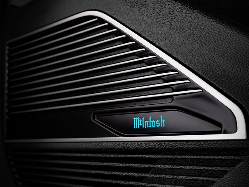 In addition to McIntosh’s unmistakable aesthetics, the MX1200 Reference Entertainment System reportedly features state-of-the-art sound, thanks to patented technologies like Power Guard (which eliminates unpleasant and potentially harmful clipping) and LD/HP (Low Distortion/High Performance) technology, which allows the system to produce “pristine sound at any volume.” The result is “the highest quality, luxury listening experience,” according to McIntosh. Of course, the illuminated McIntosh logos on the door’s speaker grille won’t hurt, nor will the aluminum framing, industrial ridged control knobs, and iconic “McIntosh Blue” decibel meters on the car’s infotainment screen.