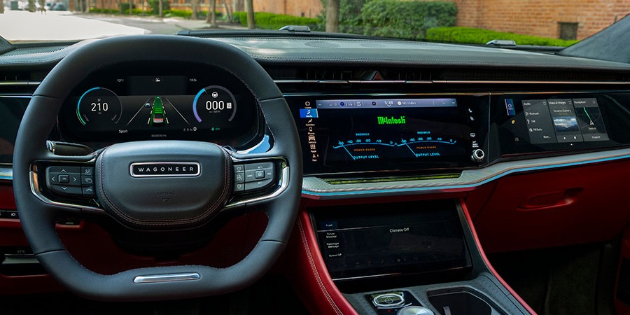 Although Jeep already offers the small Avenger EV in Europe, the all-new 2024 Jeep Wagoneer S will be the brand’s first “global” electric vehicle, launching first in the U.S. and Canada before taking on the rest of the world. The Wagoneer S will test the demand from Jeep customers for a fully electric Jeep, and will likely be the first of many electric SUVs offered by the company between now and 2030. Since 2021, the Wagoneer has made a strong comeback after a three-decade absence from the Jeep lineup. It was also in 2021 that McIntosh and Jeep first teamed up to deliver an all-new audio system for the 2021 Jeep Grand Cherokee L. In 2022, Jeep released a Grand Wagoneer with new features like air suspension, a classy leather-and-wood interior, and an over-the-top McIntosh sound system. The electric Wagoneer S Launch Edition ($71,995) will follow suit when it comes to market this autumn with a new McIntosh sound system called the MX1200 Reference Entertainment System. The system was “meticulously engineered and tuned” specifically for the Wagoneer S, according to the folks at McIntosh, who also tell us that it “represents McIntosh’s world-acclaimed listening experience and brings the brand’s audiophile-caliber luxury sound to an electric vehicle for the first time.”