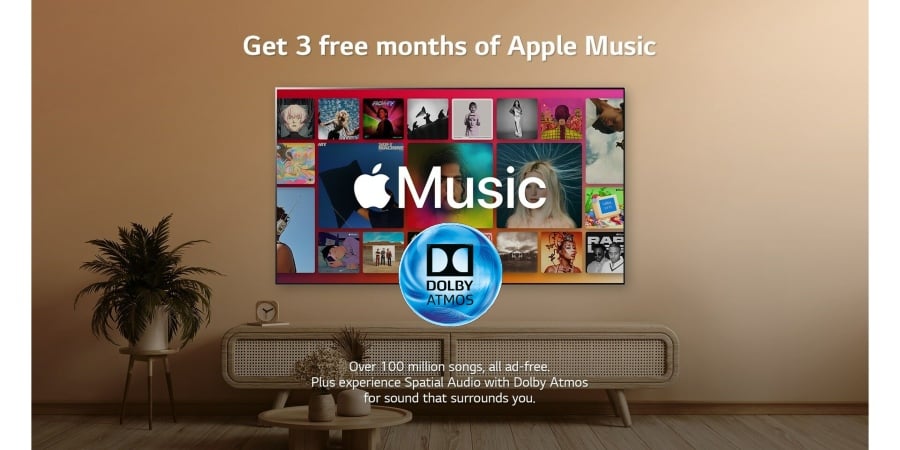 If you’re the lucky owner of a compatible LG TV, simply update the Apple Music app on your TV to gain access to the spatial audio feature and all the Dolby Atmos music that comes along with it. All OLED models launched from 2018 to 2024 should support the feature, as should all QNED models Q90T and above. In order to celebrate the addition of spatial audio/Dolby Atmos, LG is offering three months of Apple Music free to LG Smart TV users worldwide. The 3-month free trial is available within the Apple Music app of compatible LG Smart TVs running webOS 4.0 and higher. It is also available to users of the LG StanbyME Go, StanbyME, and MyView Smart Monitor lifestyle screens.