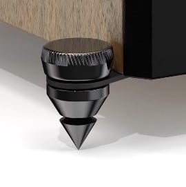 Easily Adjustable by Hand, Isolation Feet w/ Spike (shown here w/ Walnut design F100)