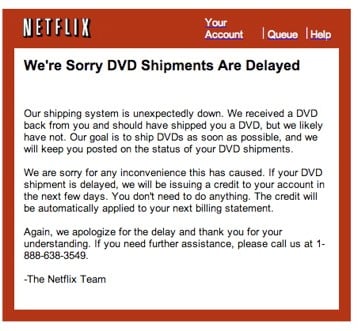 Reuters says many Netflix centers have resumed shipping this week but some are still reporting this error still which has reared its head as late as yesterday.
