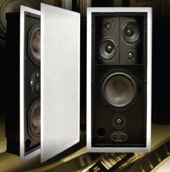 IW2770 LCR: An enclosed in-wall loudspeaker featuring dual 7” carbon-fiber woofers and an adjustable, pivoting midrange/tweeter pod with a 1” Teteron tweeter and 1 1/2” Teteron dome midrange. The pod can be rotated for horizontal or vertical mounting and includes tweeter, midrange and pod level controls. Can be used as a left, center or right channel loudspeaker. MSRP: $1199.95 each