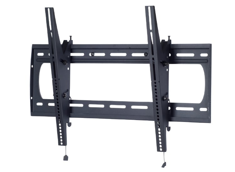 Three new products came out of Premier Mounts this week, including an modified version of their P-Series flat-panel wall mounts, the X-tilt. The new mount, the P4263XT will be debuted for the first time at InfoComm 2011. The new tilt mount is very similar to the company's P-Series, but adds extra downward tilt - up to 15 degrees, and more upward tilt - an unusual 10 degrees. They also integrated new quick release levers to make it easy to adjust by hand. Modified mounting brackets now come with auto-latching locks which will allow the back plate to quickly and easily fasten to the mount. They also added quick-release tabs to pull the monitor off the wall-plate when needed. It should speed up installation, and make the whole system easier to service. Overall, we've found Premier's flat panel mounts to already be pretty easy to use - and by "easy", I mean "quick and adjustable".