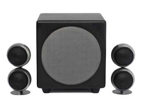 Last but certainly not least is Orb Audio. These round little speakers have impressed us from our very first review. The Classic Two Stereo System they are giving away in our forums sport a Mod2 configured pair of speakers. The Mod2 are essentially two of their spherical speakers on a single stand. The speakers sport a 3" driver in each sphere and are constructed out of carbon steel. They've paired these with their 8" ported subwoofer. This is the perfect desktop system or as a started kit for a future full surround system. The Classic Two Speaker System is valued at $698.
