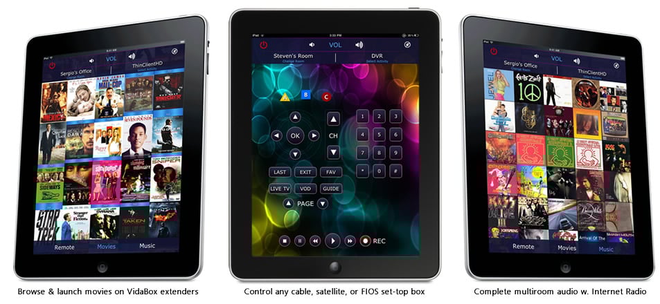 "The combination of the iPad and the LiivController running our vAutomation 2.0 platform provides the seamless AV equipment control & media browsing experience that dealers and customers are clamouring for," states Steven Cheung, President of VidaBox, LLC. "With a single tap on an iPad, customers can power their TV, receiver, dim the lights, and then see a cable box remote displayed right on the touchscreen & start channel surfing - all from one touch. They can also switch to different device inputs on their TV or receiver - say, a Blu-ray player - and see the remote control for their disc player come up right on the iPad. While they're enjoying the movie, volume and mute buttons are available on the same iPad interface - making it very simple and convenient to use."
