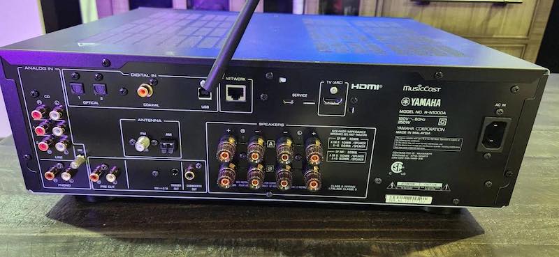 A look at the back panel reveals an array of input/output options. Digital inputs include optical, coax, USB and to keep you actively connected online, your choice of Ethernet or Wi-Fi. You'll also get 3 analog RCA inputs and for vinyl playback, a phono input directly connected to Yamaha's high-quality MM phono preamp, the latter being the main reason the N-R1000A earned an Audioholics 2023 Product of the Year Award.