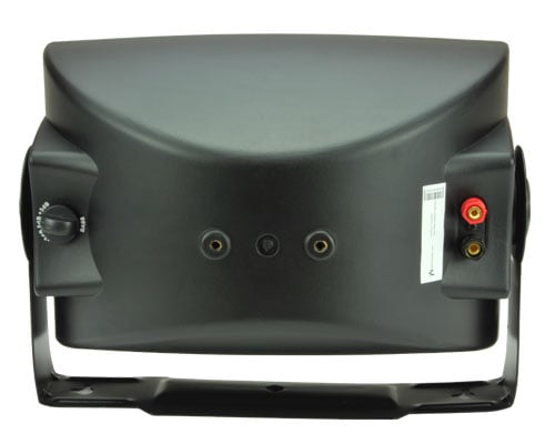 Each speaker sports a 1" silk dome tweeter, a 6.5" fiberglass woofer, and an acoustically transparent metal mesh grill. The enclosures are built out of ABS polymer and are weather resistant. The bracket included with the Intimus Outdoor speaker allows a lot of freedom in positioning. The -3db/0/+3dB bass adjustment switch will allow you to zero in on the proper performance based on your mounting location. Each speaker has a pair of five-way binding posts.