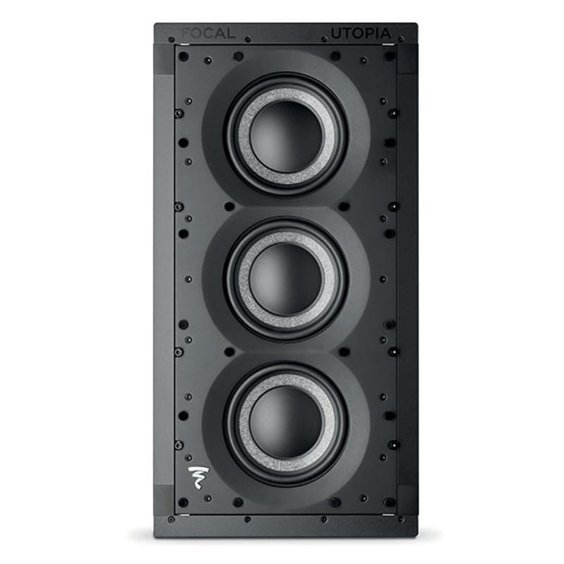 The 1000 IWSUB Utopia might be the most fascinating product in the whole 1000 Series lineup. It’s certainly the most versatile. At its core, the 1000 IWSUB Utopia is an in-wall passive subwoofer featuring three 6.5-inch W cone bass drivers (designed exclusively for low frequencies), built into a slim, sealed cabinet. Focal claims that the 1000 IWSUB Utopia is “capable of reproducing incredible levels of powered and controlled bass.” You can, of course, use the IWSUB to reproduce a standalone LFE channel. In fact, you can join up to 4 units together to create a super-sub, using just one amplifier channel — assuming your amp can handle a minimum impedance of 2.2 ohms. There are plenty of amps out there for which this would be no problem. (Parasound’s Halo amps come to mind.) But that’s just the beginning. The 1000 IWSUB Utopia features an impedance selector jumper (8 ohms or 72 ohms), which is the key to its ability to scale to suit even the largest home theater installations. If you want to combine more than 4 units on a single amplifier channel, simply select the 72-ohm position and carry on. The units link together using professional Speakon cabling, which is included in the box. That same cabling can be used to link one or more 1000 IWSUB Utopia units to an in-wall 1000 IWLCR UTOPIA speaker. In this case, we’re not dealing with the LFE channel. Instead, the IWSUB becomes part of the in-wall speaker, increasing its low-frequency extension and SPL-output capabilities. Each in-wall speaker can be paired with as many as six IWSUB units using just one amplifier channel, thanks to that impedance selector. (In the 8-ohm position, the max is four subs per speaker). When paired with several IWSUB units, the already-impressive 1000 IWLCR Utopia becomes capable of delivering crushing SPLs to even the largest theaters imaginable in any mega-mansion. Paired with one or two subs, each speaker is already a powerhouse. This configuration flexibility allows the user (or the installer) to mix and match speakers and subs as needed to suit the space and the performance required, without any additional hardware or cabling. Even the grilles are joined together with a “premium aluminum strip,” so a multi-sub amalgamation can be connected to a speaker and the whole combination will look like a single, cohesive unit.