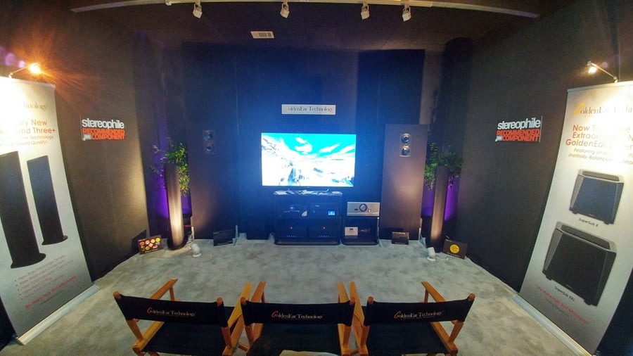 informed us it was just one. Impressive, most impressive. GoldenEar demoed an animated movie and Star Wars Battlefront game demo both of which did a nice job showing off the immersive effect the system produced. Kudos to Goldenear for doing Atmos the right way and not the bouncy house speaker method that we've always found to be far less effective.