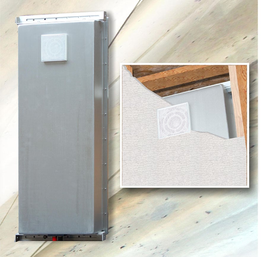 Constructed of premium aircraft-grade aluminum, the Small Aperture series loudspeakers have been engineered to deliver the full musical experience including high output levels, deep, defined bass and wide dispersion into the listening area while meeting the stringent demands of interior designers. Ideal for both renovation and new construction projects, the James 63SA-4 fits elegantly into any 2X4 stud bay. And James Loudspeaker’s innovative telescoping bracket system eliminates hassles while increasing efficiency for integrators by accommodating irregularly spaced studs. The bracket provides a firm and secure mounting fixture for the loudspeaker assembly.