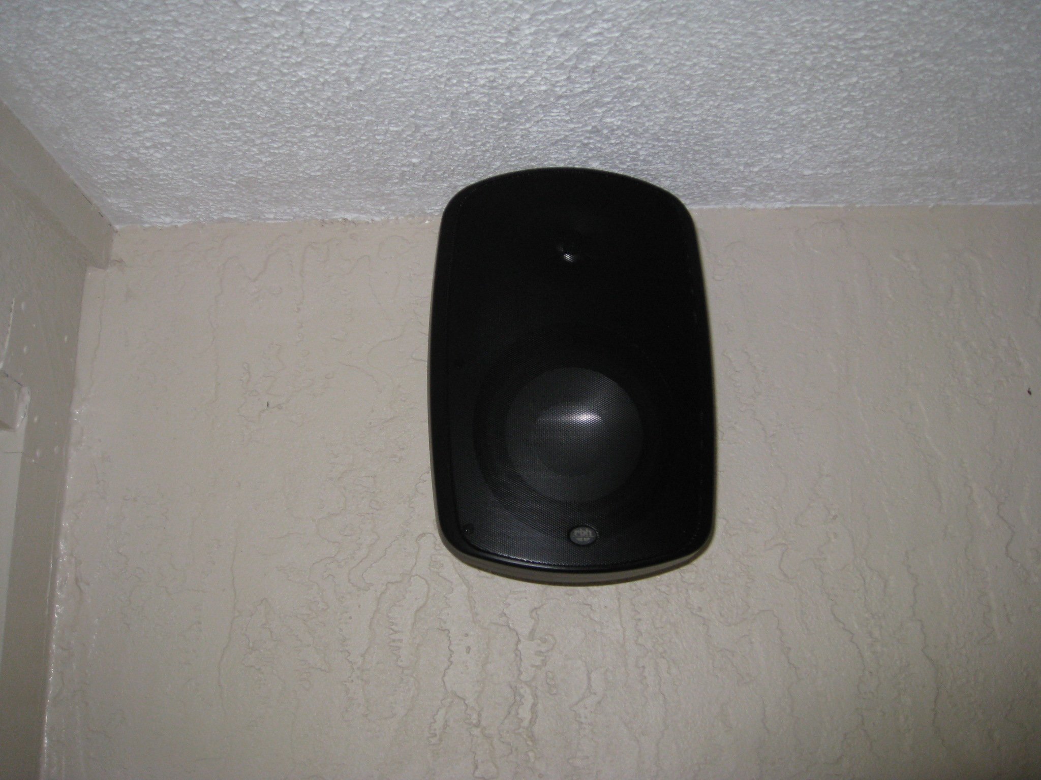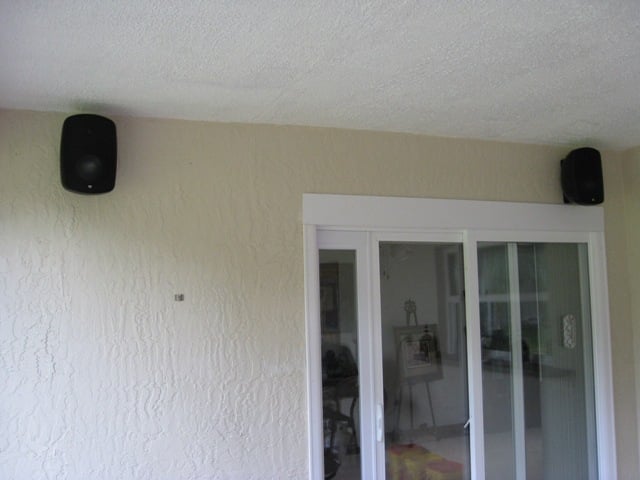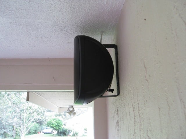 The other setup I did when testing these speakers was to mount them on my patio for outdoor listening. I mounted them near the ceiling and here is where I wished the speakers had a bracket that swiveled up and down so I could point them down slightly. I used my family room equipment which consists of an old Yamaha receiver and Panasonic DVD player. This was quite a step down in component quality compared to my reference system but not bad especially for outdoor purposes. There is no subwoofer on the patio. The installation was quite easy. I have block walls so I just used a couple of Tapcons, put the brackets on and mounted the speakers. The installation was as easy as it sounded. Of course I left out the wiring which is always the hardest part when you want to hide them.
