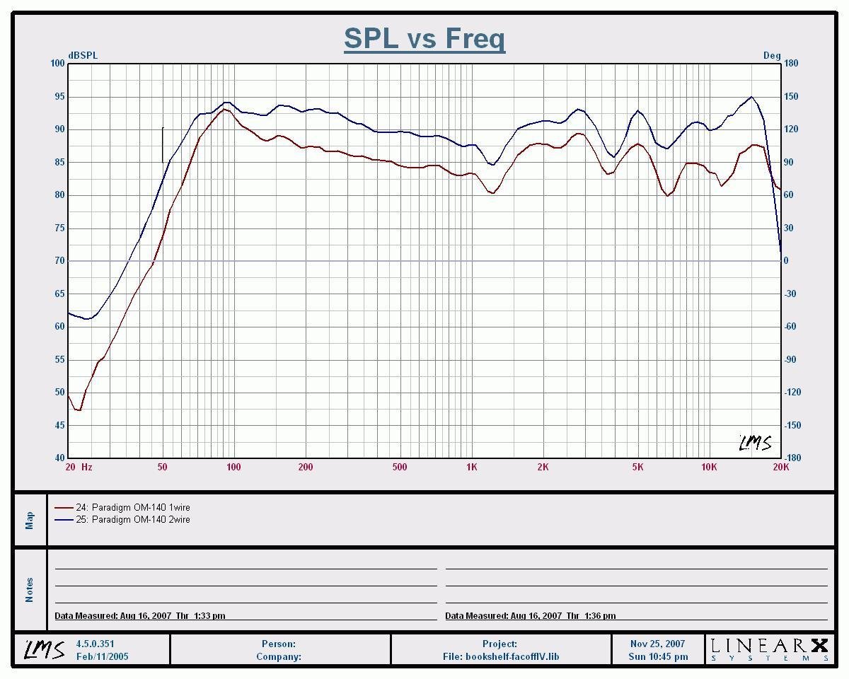 The single wired impedance of the Paradigm 60-SMs is roughly 8 ohms while the two wired impedance is (as expected) ½ of that – 4 ohms. These speakers are a tad more reactive than the Boston Acoustics RK6T2s I previously reviewed, maintaining a +30/-45 degree phase within the entire audio spectrum though never below 4 ohms (two wire connection) at any frequency. This demonstrates deliberate and careful crossover design to ensure these speakers will work well with a wide variety of amplifiers. I still recommend using only the single wired connection to a common amplifier output since I found very little sonic benefits of running them dual wired to each amplifier channel and it only needlessly stresses that particular amplifier more than it needs to. Reserve the two wired connection scheme as per the installation diagrams provided by Paradigm previously mentioned in this review.