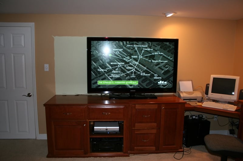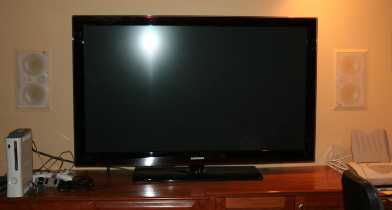 I'd have liked to have heard a more unified center experience with the NTs, however. It wasn't as if the imaging was bad - far from it. But I've heard more solid imaging in the past. With some additional tweaking of the tweeter alignment, this may tighten up a bit. The placement of the display (which I pushed as far back as I could) might have been deflecting a little of the sound, messing up the imaging slightly. I hope to eventually convince my parents to wall mount the display as well. Of course, after having to spend hours/days/months convincing my Mom that they "needed" a 58" plasma, her first comment was, "Huh, I thought it'd be bigger." If it was a lighter, instead of pushing back speakers like she used to, she very well may have been pulling out the TV. Wall mounting may or may not be an option here.