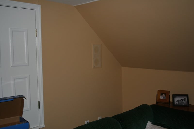 We don't talk much about in-wall speakers here at Audioholics because it is so hard to do a review. It's a rare occasion when you can find someone that will let you tear up their room just to install dedicated speakers. Heck, we have a hard enough time convincing people to buy speakers at all. When the rare occasion arises, we jump. The Speaker Company jumped with us and agreed to provide their brand new NT line of speakers. We chose a pair of the 6.5" NTIW26 for the fronts and a duo of 5.25" NTIW25's for the rears. Because of the shape of the room, a center channel was not feasible. In the world of home theater, you've got to expect a few issues. In the grand scheme of things, running a phantom center isn't so bad.