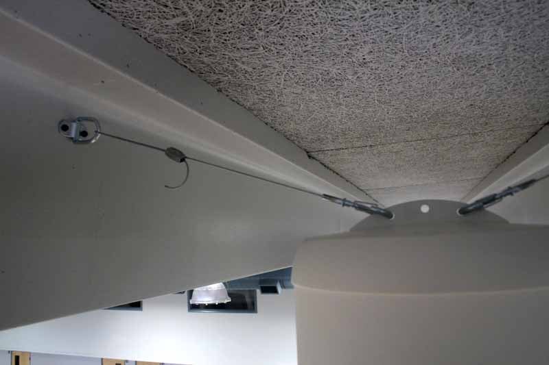 Hanging the speakers in the air was actually a very simple process, though we made it more complex by mounting them as high as possible between the roof supports of the recreational facility. Since the ceiling was made of rebar-reinforced concrete beams, the desire was to mount brackets on the beams located to each side of the speaker and suspend the OCV 6 in-between. A hammer drill and Tapcons made simple work of this and the included safety wires and Gripple Speed Clamps worked very well to secure our OCV speakers where we wanted them. The dual mounting points accomplished two things. First, it allowed us to pull the OCV 6 up into the space between the beams, and second, it automatically gave us two mounting positions for safety in the unlikely event one would fail.