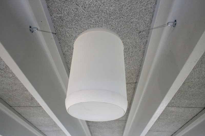 As we indicated, the OCV Series of speakers form Tannoy are cylinders, or pendants if you will, which hang down and blanket the area below with music. The speakers come in black or white and have powder coated steel grills that protect the coaxial speakers from impacts and other potential harm. The OCV 6 we reviewed comes with a 6" mid-bass woofer that uses mineral-loaded cone material and a 20mm tweeter. The frequency response is 80Hz to 20kHz (-3dB) and the OCV 6 speakers can handle up to 240 watts of peak power, though average handling is rated to 60 watts. The ideal load for these pendants is 16-ohms fed by a 120W amplifier. For most installations you're going to see a multi-channel amp that feeds the speakers wired for different zones of audio.