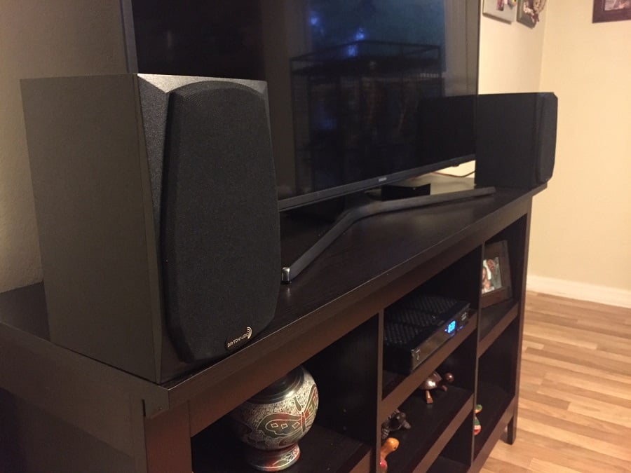 Dayton Audio MK402BT Wireless Speakers (left); Sony Core SSCS5 Bookshelf Speakers (right)
