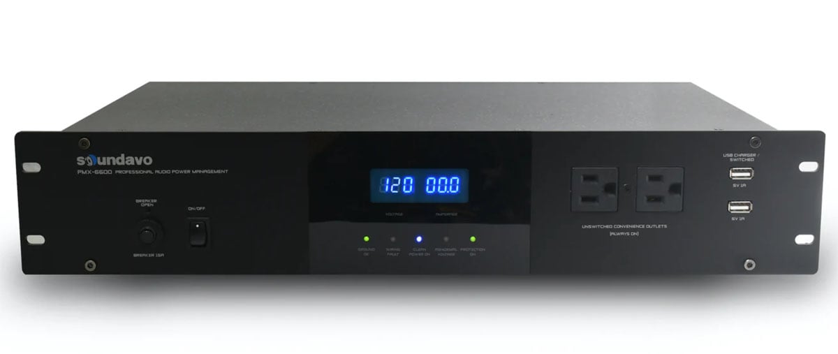 The PMX-6000 Professional Audio Power Management is a power conditioner and sequencer with excellent feature including the status and alert capabilities: a voltage meter and amperage meter for real-time analysis, LED status for grounding/polarity/noise filtering/abnormal voltage/surge protection, and an audio alarm for unsafe voltage. The PMX-6600 has 14 outlets (12 switched) individually optimized for digital, analog and high-power devices (4 each), 3-state power up/down system, time delayed outlets, RFI filtering, 12V trigger input/output with bypass, front panel digital LED meter display of incoming voltage and amperage. That's a lot of features for the price and a worthy addition to your AV rack.