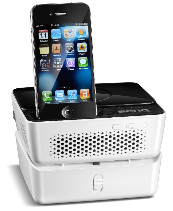 The BenQ Joybee GP2 employs high-efficiency 3LED illumination and DLP projection technology in a compact size, measuring just 5.5" x 2" x 5.1" (140.3 x 52.5 x 129.8 mm) and weighing just 1.25 lbs (565 g). It can put out 200 ANSI lumens (double the GP1) and is rated up to 160 inches (we're betting a clear/bright picture tops out well south of that in anything but an absolutely black room). There is also an optional battery you can get for the GP2 that will provide up to 3 hours of life. For business professionals, the GP2 has 2 GB of internal memory (transferable via USB) and an integrated document viewer for Microsoft Office and PDF documents. It's like they read our reviews or something...